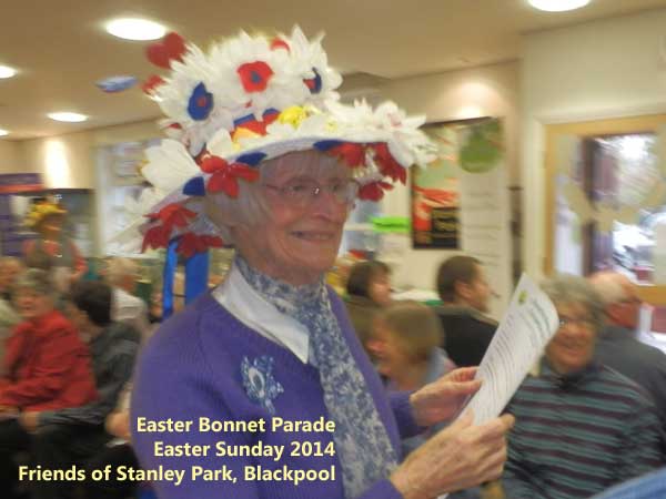 The Friends of Stanley Park were delighted by the great turn out for the Easter Fair and the wonderful Easter Bonnets produced. In fact it became so exciting it was decided to parade round the Art Deco Cafe where the diners gave them loud applause.