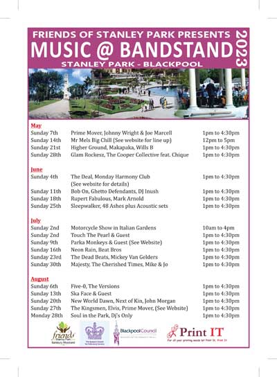 From 5th April to 1st May there is a photographic exhibition in Stanley Park Visitor Centre featuring musicians and people enjoying the Friends of Stanley Park - Blackpool Music at the Bandstand.