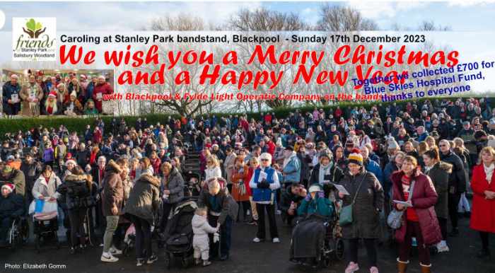 On Sunday 17th December 2023 at 1pm there are Christmas Carols on Stanley Park Bandstand Blackpool. With singing led by Blackpool and Fylde Light Opera Company. Collections will be for Blue Skies Hospitals Fund for better patient care at Blackpool Victoria Hospital.